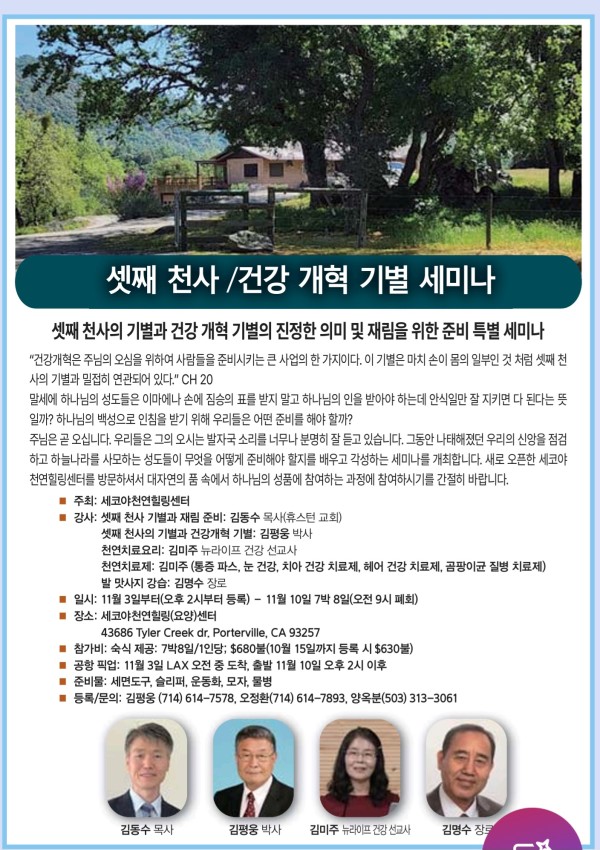 기타 셋째 천사 기별과 건강 개혁 기별 세미나 페이지 정보 작성자 peterkim쪽지보내기 메일보내기 자기소개 아이디로 검색 전체게시물쪽지보내기 메일보내기 자기소개 아이디로 검색 전체게시물 작성일2024.10.11 05:46 조회수 11,168 글씨크기 + - 본문 예수님의 재림을 고대하는 성도들을 위한 특별 세미나 추천 1 페이스북 공유 트위터 공유 이전글제34회 남가주 한인재림교회 연합찬양제 24.10.31 다음글남가주 오렌지 중앙 교회 창립 23주년 기념 건강 EXPO 일정소개 24.10.10 댓글 0 댓글목록 등록된 댓글이 없습니다. 목록